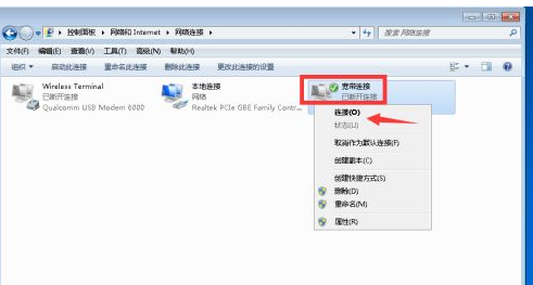 6、下次使用,只需要在网络连接页面或在桌面找到宽带连接,点击鼠标右键,然后选择连接即可.